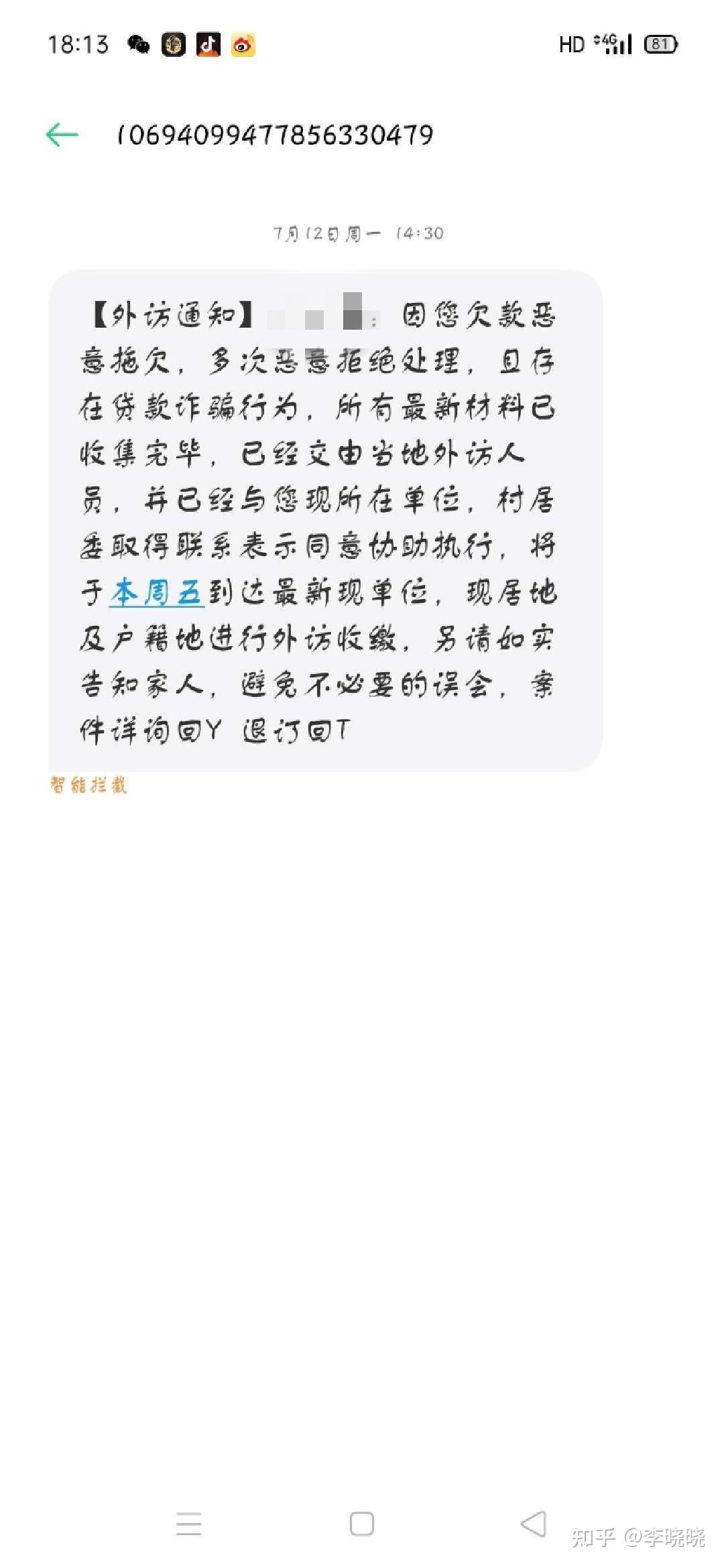接到催收短信说要上家门,但是没有逾期